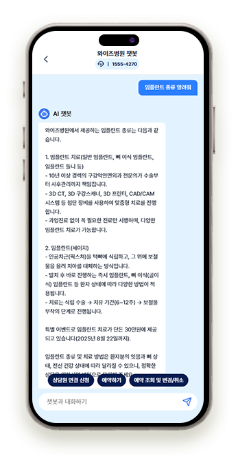 AI 페이지는 예약 부터실시간 AI 상담 그리고이벤트 및 병원 홍보까지